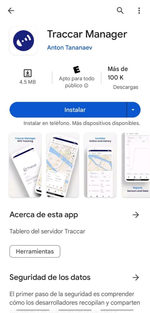 Paso 1: Instalar la app Traccar Manager desde la Play Store o tambien disponible para IPhone desde la App Store