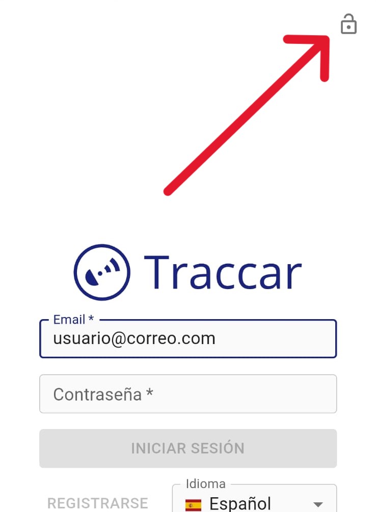 Paso 3: Modificar la dirección del servidor según se indica. La dirección que debe ingresar es: http://traccar01.mooo.com:8082 <— Tip: Puede Copiar y Pegar la dirección del servidor